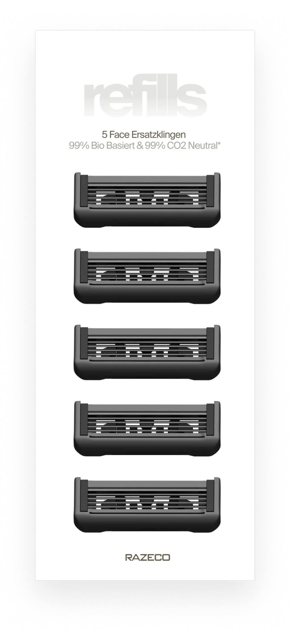 They’re 99% bio-based (certified!), and when thrown away, they create way less CO₂ than regular plastic razors.